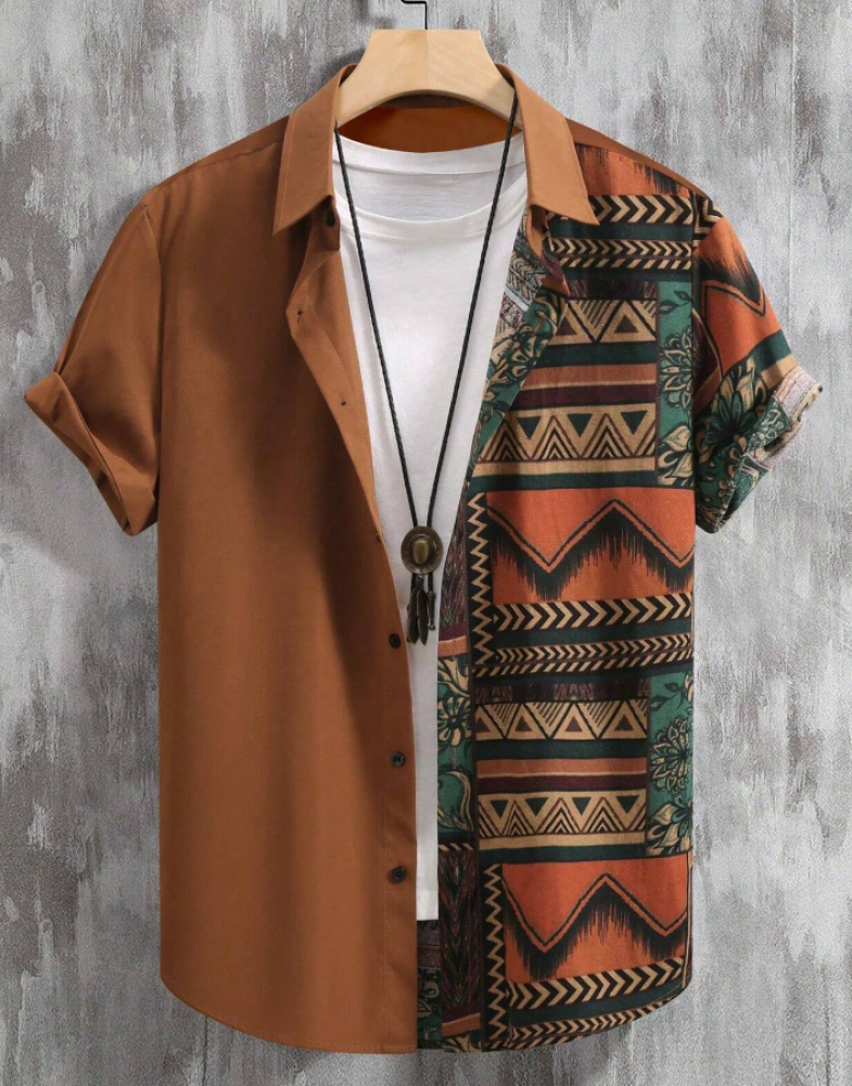 قميص رجالي كم قصير بتصميم عصري وخامات مريحة تناسب مختلف المناسبات، يوفر مظهراً أنيقاً وعملياً مع سهولة في الحركة والتهوية.
